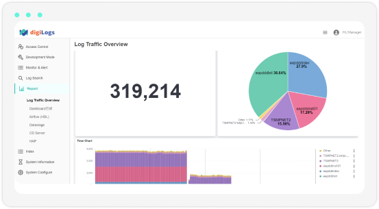 digiLogs 集中化日誌管理平台,支援超過 55 種系統資料格式的無差別蒐集,提供解析邏輯、日誌資料萃取保存,以及多元的查詢機制—全文檢索、關鍵字查詢、和鏈路式關聯查詢。配合視覺化報表與數位儀表板,不僅確保企業日誌完整無遺,同時也提升IT維運效率、維持企業營運不中斷。