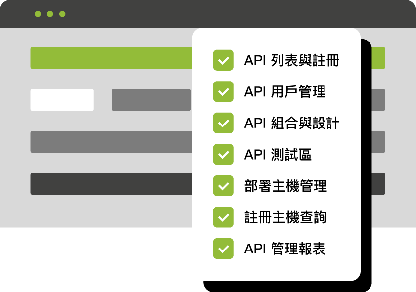 API 是讓系統間資料交換的關鍵橋樑,因此完善的管理便尤為重要, API 管理涵蓋一系列流程,包括建立、發布、維護和保護API,並即時監控 API 狀態,以確保 API 的安全性、可靠性和一致性。