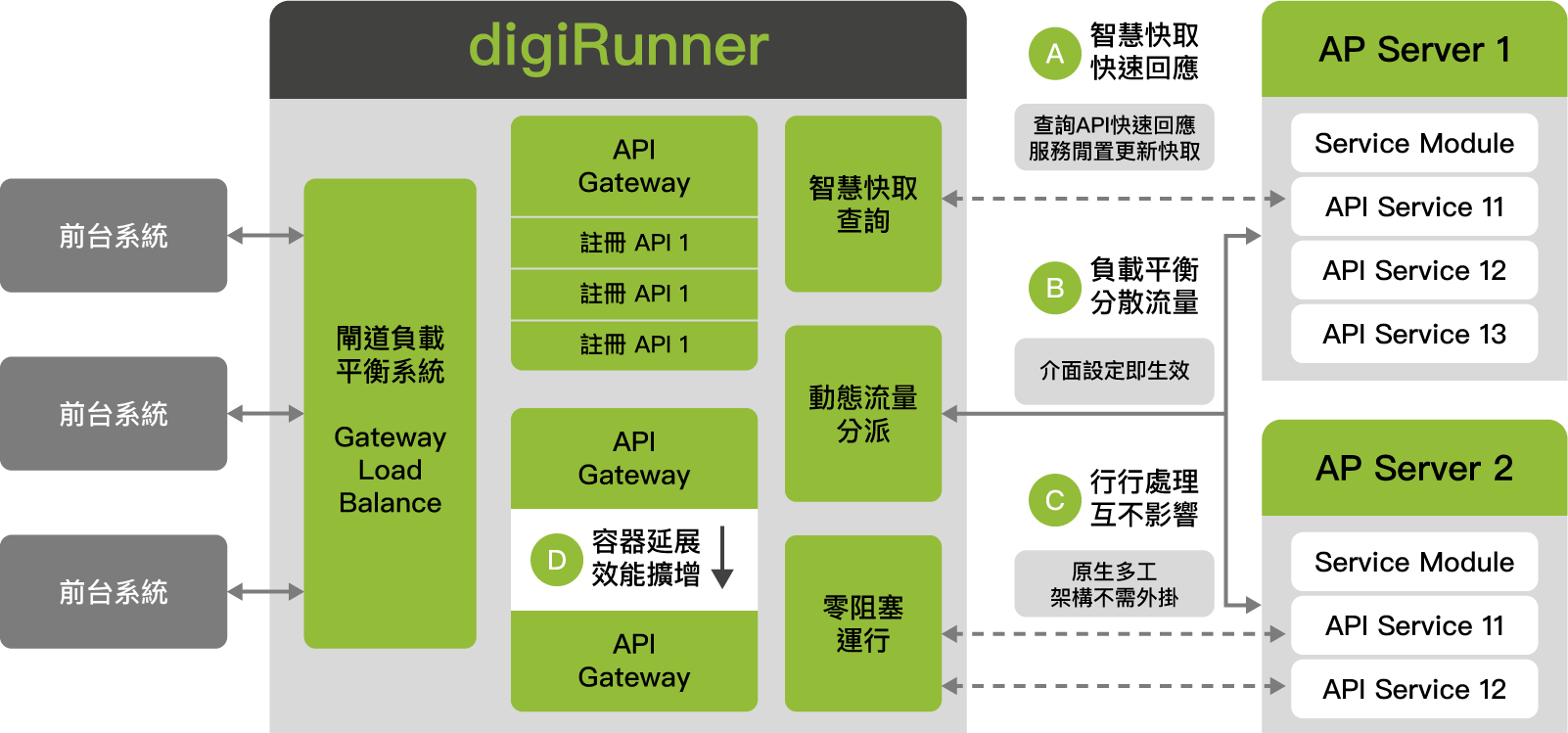 零阻塞式運行模式增強 API 處理的效率和速度,讓多支API 之間的運行互不干擾、提升運行效能。