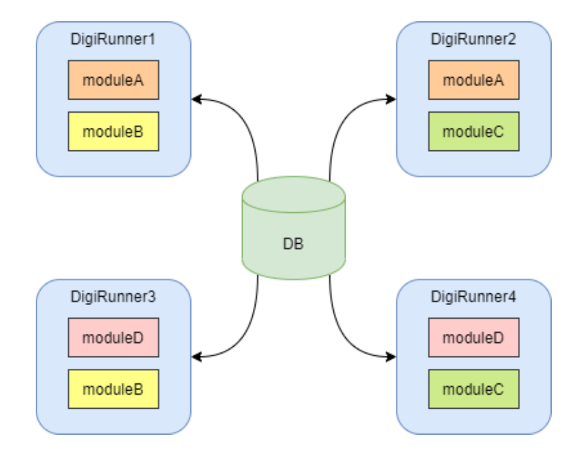 而digiRunner就像一個AP Server且一口氣解決了這些問題,它主要是依賴DB解決cluster同步問題,然後依賴昕力專利【具有軟體在線部署服務管理平台的電腦系統】及【多軟體模組可熱抽換之電腦程式產品及方法以及裝置】達到zero downtime熱部署行為。只要在後臺管理畫面上選擇部署哪個module(war)在那些node上,整個cluster就會同步作業,在module(war)版本切換間完全沒有downtime,就算新module載入失敗也沒關係,因為新module要載入成功才會上線提供服務。